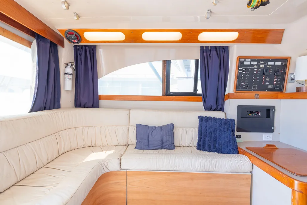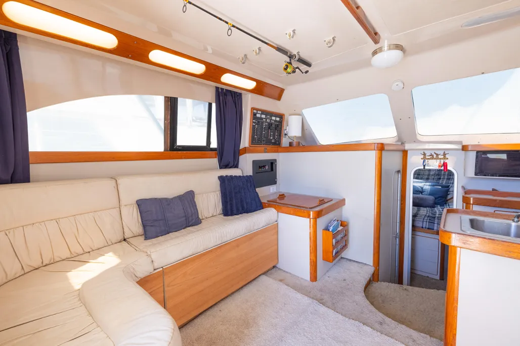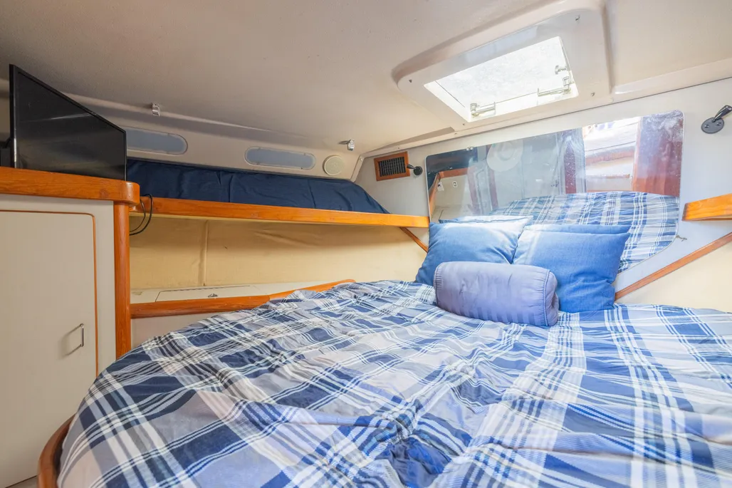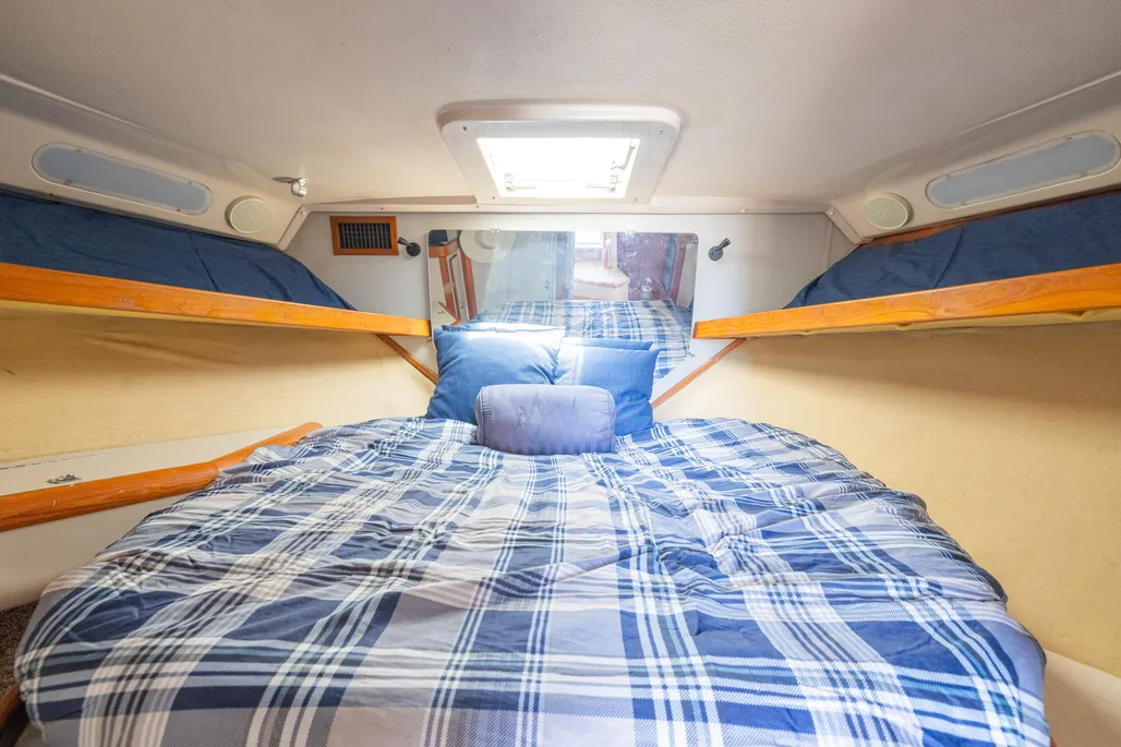 - Stateroom: Forward cabin with a double berth, storage lockers, and direct access to the head.