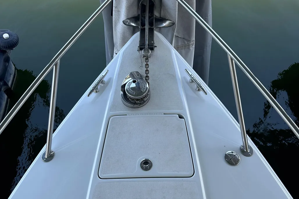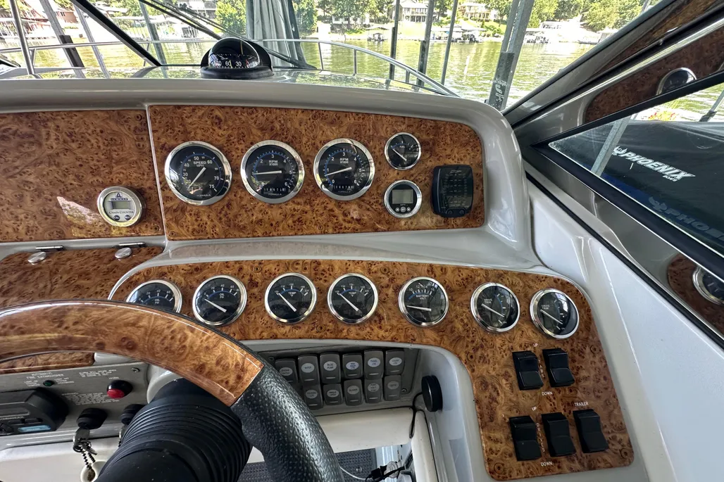 Water heater, battery charger, Kenwood stereo system, water pressure system, dockside water hookup, 30 amp service, windlass with anchor, wood interior, electric engine hatch, trim tabs with indicators, tilt and trim on outdrives with tie bar, Bravo 3 drives, helm bolster seat for sitting on. walk-thru windshield, walk-thru transom door, auto halon, compass, depth finder, ws/wiper, cockpit carpet, sunpad for cockpit, cockpit cover, arch with bimini's, swim ladder, extended swim platform.