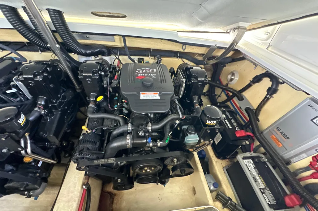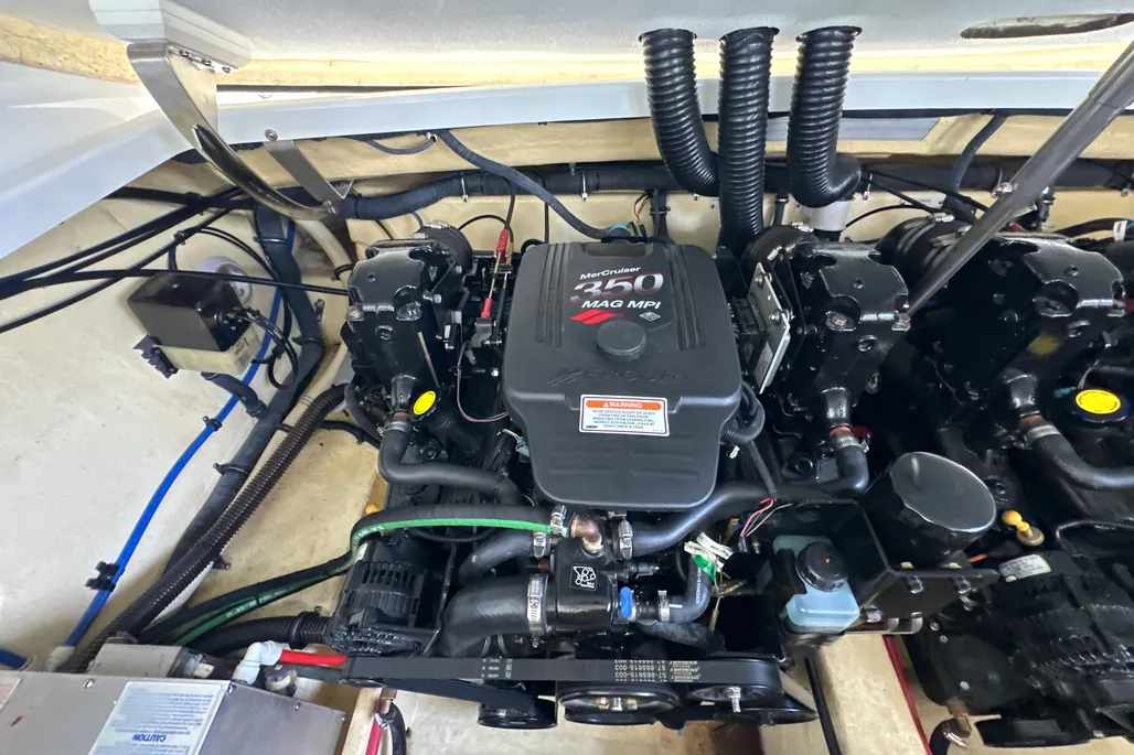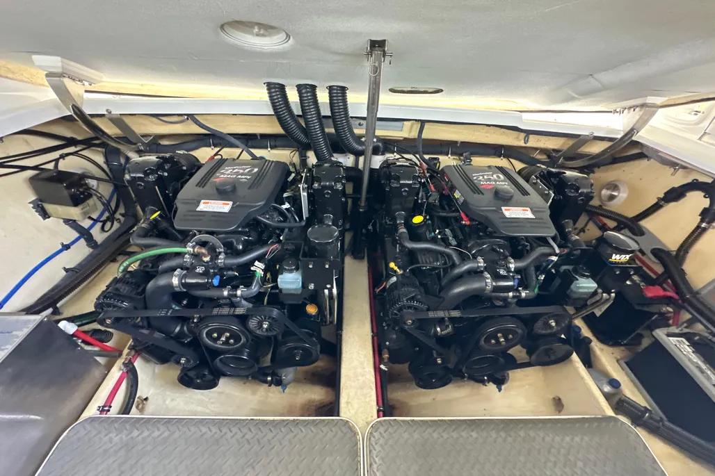 - Twin Mercury 350 Mags-300HP engines RWC with Bravo 3 Drives with 140 hours.