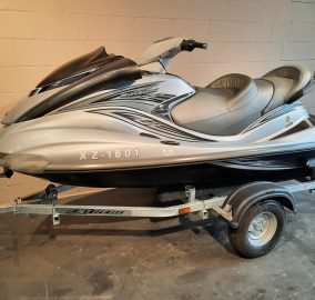 This 2007 Yamaha WaveRunner FX Cruiser HO features a 160-horsepower, 1052cc, 4-cylinder engine, a 3-passenger capacity, and a 354 kg dry weight. It has a length of 3.34 meters, a 70-liter fuel capacity, and a 100-liter storage capacity. The hull is made of Sheet Molded Compound (SMC) and has a progressive stepped V-hull type.