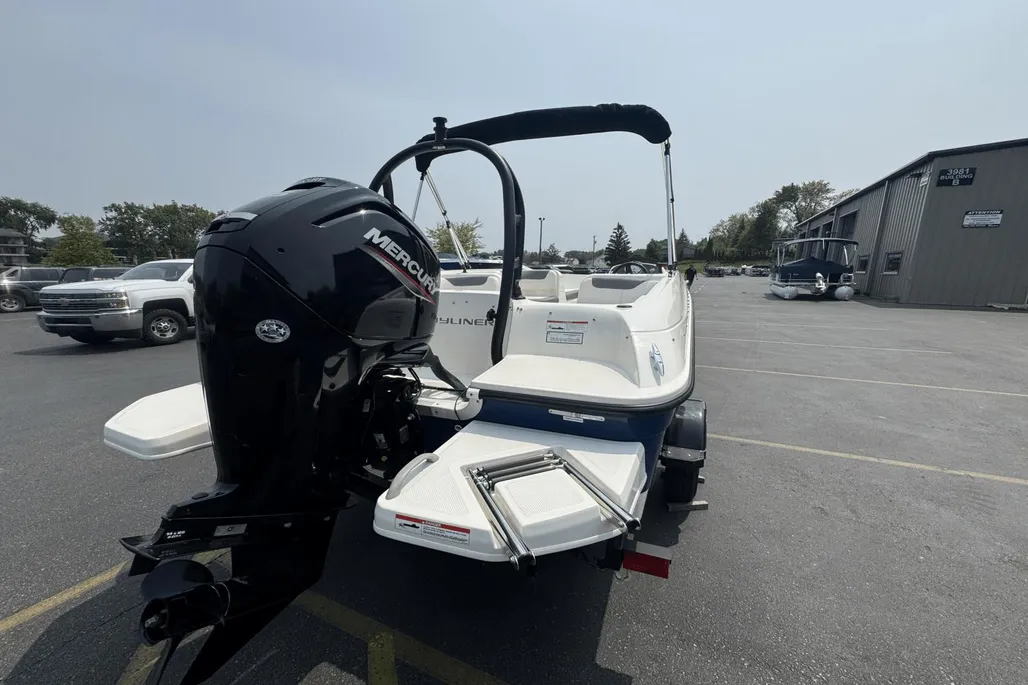 This stylish and fuel-efficient boat is perfect for family outings, watersports, or casual cruising. The M-Hull design provides smooth handling and enhanced stability, making it ideal for both new boaters and seasoned captains. With room for up to nine passengers, the spacious deck layout includes comfortable seating, ample storage, and a modern helm with easy-to-use controls. Whether you're heading tothe sandbar or enjoying a day on the lake, this Bayliner delivers reliable performance and lasting fun. Trailer included for easy transport.