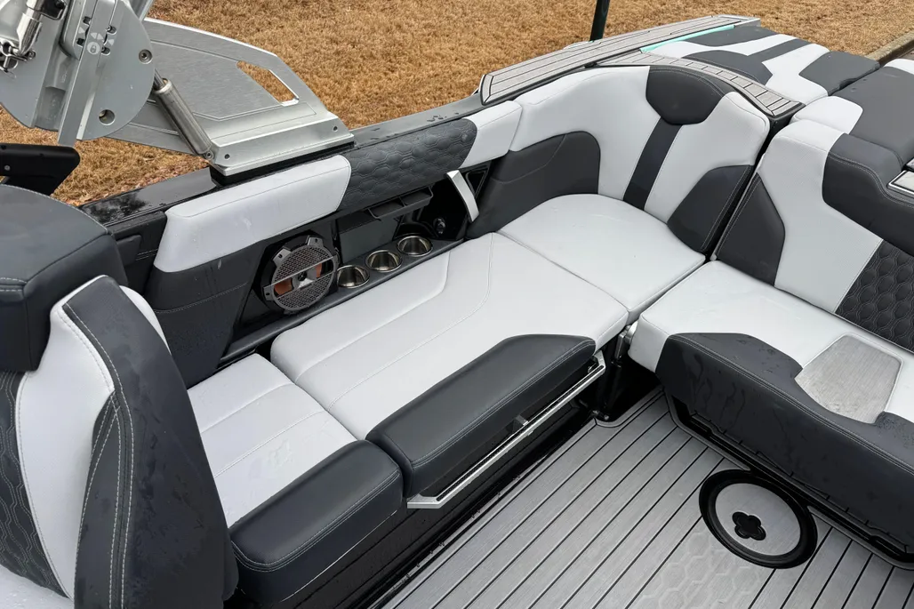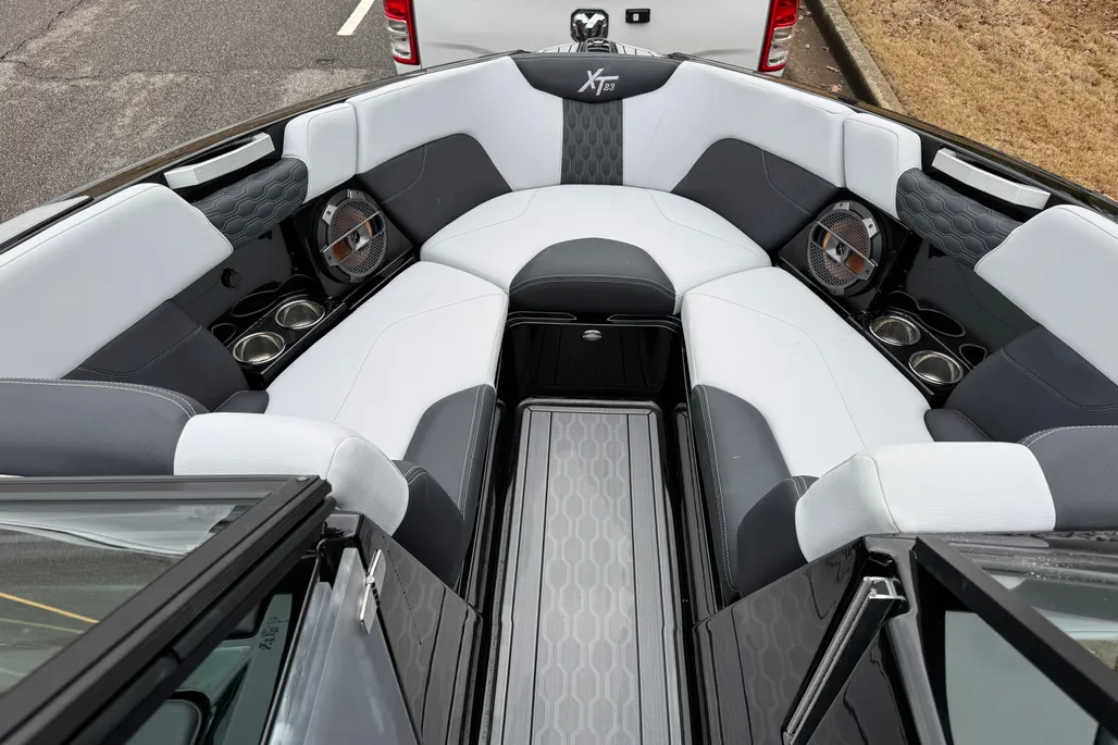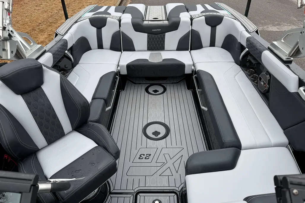 This Mastercraft XT23 is packed with features designed to enhance your time on the water. Its 23.33-foot length provides ample space for passengers, gear, and all the essentials for a day of fun. The boat’s advanced hull design ensures a smooth and stable ride, even in choppy conditions, while the intuitive controls make it easy to operate for both novice and experienced boaters. The XT23’s layout is optimized for comfort and convenience, with thoughtfully placed seating, storage compartments, and easy access to all areas of the boat. Every detail is crafted to maximize enjoyment, from the spacious swim platform to the ergonomic helm.