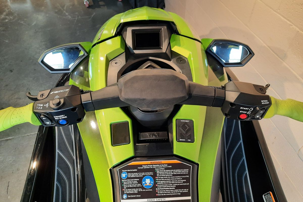 This 2023 GP1800R SVHO uses Yamaha’s 1,812cc 4 stroke EFi SVHO Supercharged motor and lightweight Nano2 hull resulting in outstanding performance and economy! Standard features include Yamaha’s terrific RiDE control system with electronic trim control and reverse plus on-water brake function, pin-lock security with drive control, launch control and auto trim and re-boarding step.